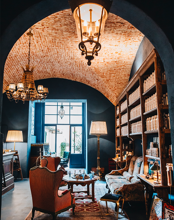 Le architetture storiche restaurate dialogano con un linguaggio contemporaneo fatto di superfici pulite, arredi misurati e una palette materica raffinata. Il progetto valorizza i profumi e il rituale della loro scoperta, trasformando la visita nello spazio in un’esperienza sensoriale.