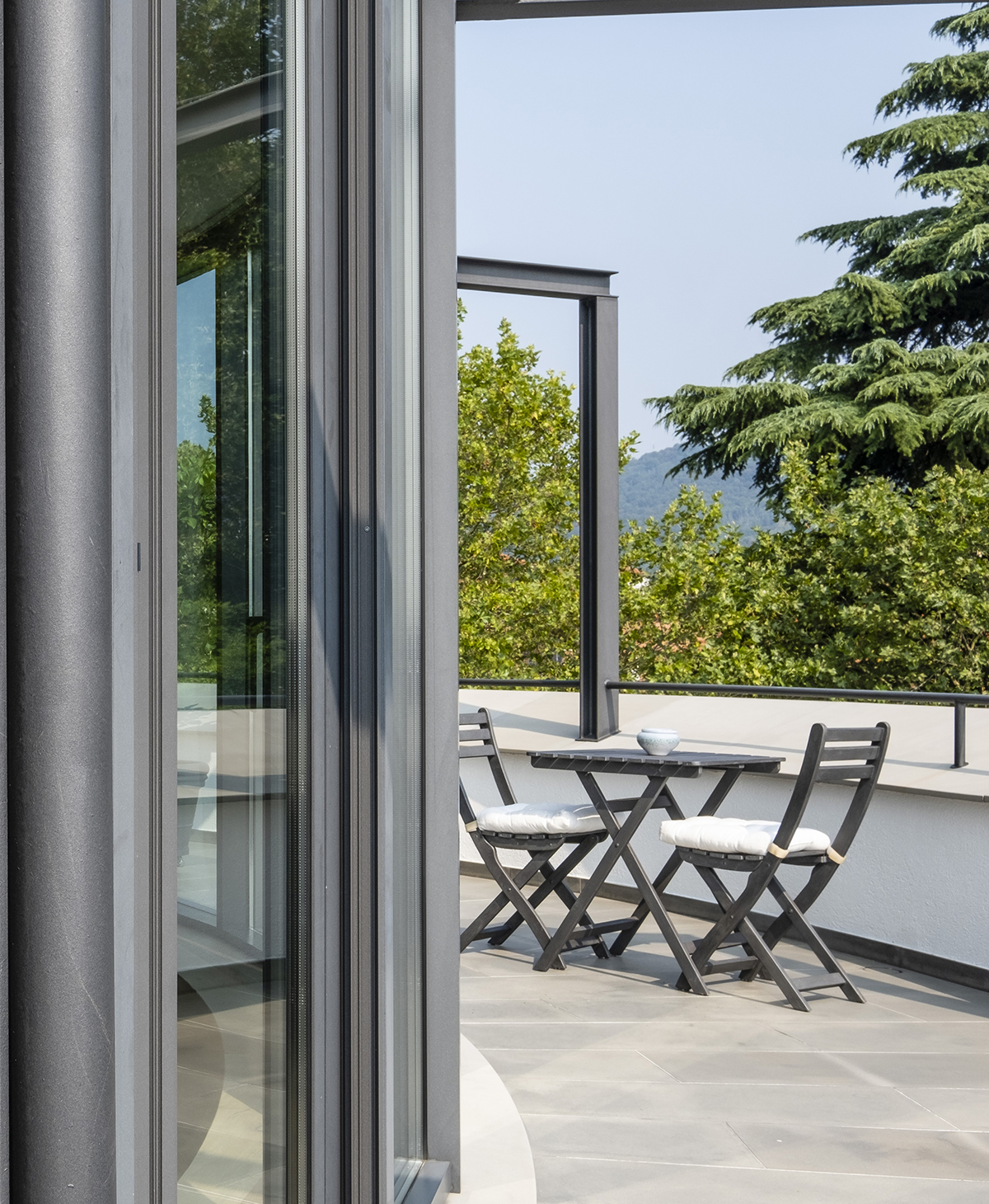 L’intervento ha trasformato una configurazione architettonica complessa in una residenza di architettura contemporanea equilibrata e pienamente funzionale. La geometria originaria è diventata elemento identitario dell’abitazione, integrata con arredi su misura e soluzioni tecniche evolute.