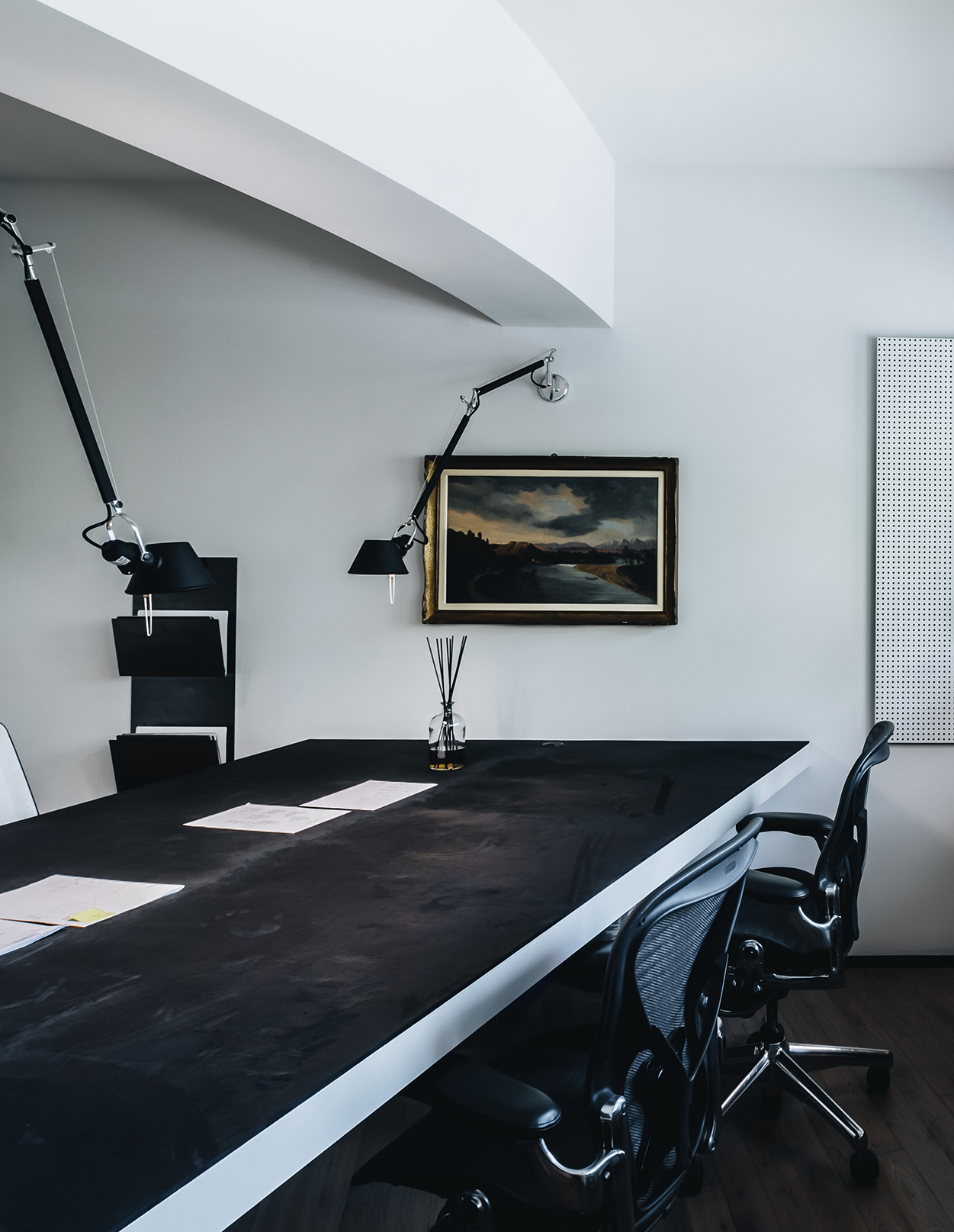L’ufficio è stato progettato per riflettere il nostro modo di lavorare, basato su dialogo, collaborazione e attenzione al dettaglio. Era importante trovare un equilibrio tra rappresentanza e funzionalità, valorizzando allo stesso tempo la particolarità architettonica della torre cilindrica.